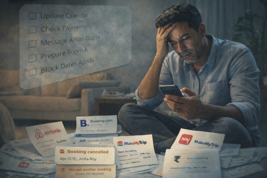 Many hosts list their property on more than one platform — Airbnb, Booking.com, Agoda, MakeMyTrip, and sometimes others. This is a smart decision because each platform brings different types of guests. But after some time, what felt like growth starts feeling heavy. Too many apps. Too many notifications. Too many calendars to check. If you